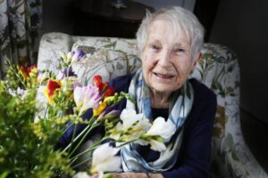 My mother entered enthusiastically into the life of the Church. Apart from her time at St Barnabas she had worshipped at Mary Mags for 64 years. Even in her last year she managed to join services and events online from her care home. One of the highlights of her 99th birthday was a Zoom call with Father Peter and members of the congregation.
